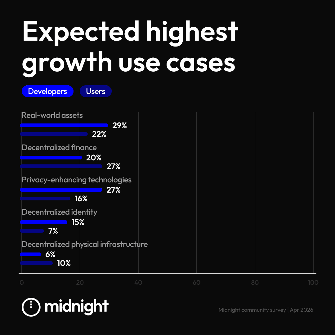 The survey results confirm that the Midnight community views privacy not as a standalone feature, but as a foundational component of the next generation of DApps. From RWAs to digital identity, the demand for programmable privacy is clear.