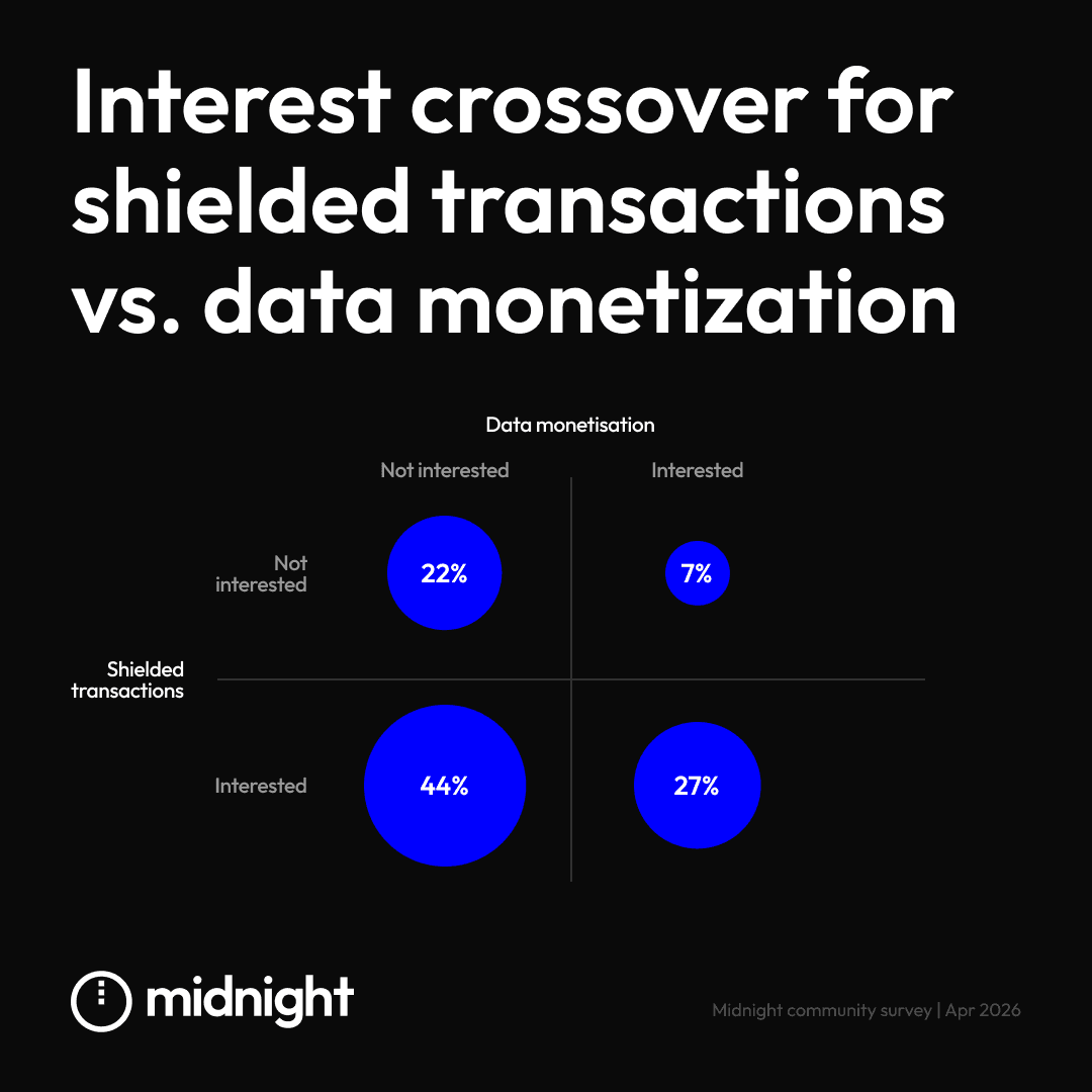 Furthermore, 44% of respondents who are excited about shielded transactions do not indicate an interest in monetizing their data.